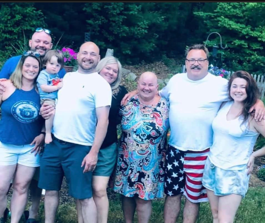 PAM & FRANK WITH SONS, DAUGHTER, GRANDSON, & DAUGHTERS-IN-LAW
