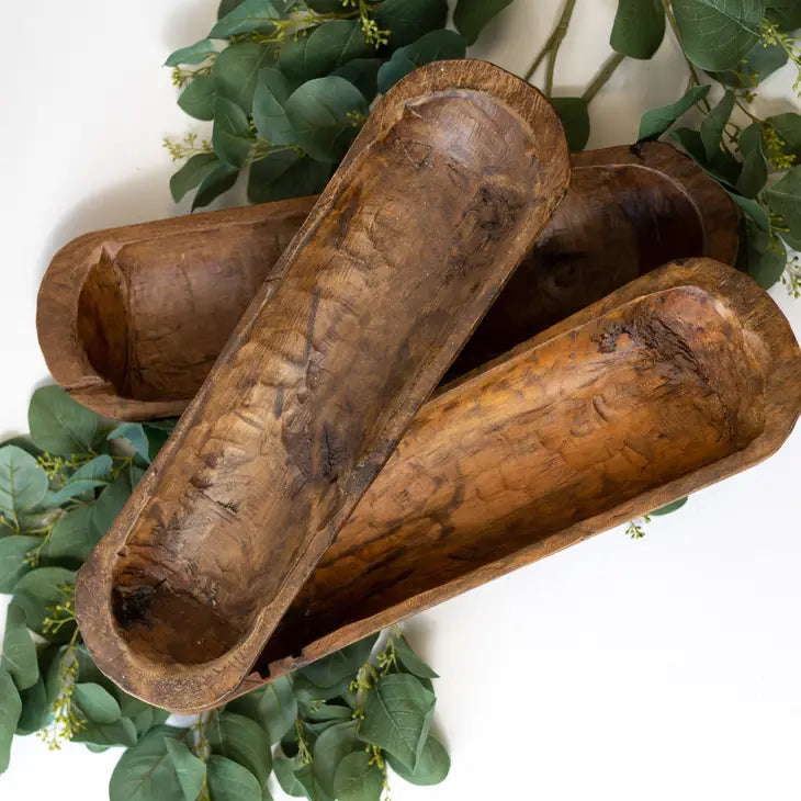The small bread bowl brings a touch of rustic style to your home. This versatile piece is perfect as a convenient catch-all for your keys and the mail, or as storage for bath linens and more. Each bowl is hand carved and uniquely made. 20 Inch. Please understand these are wooden bowls made to look rustic from raw wood. Some may have knot holes, scratches, knife marks, saw blade marks, sap or minor cracks and blemishes. These are not defects. These are a natural part of the bowl that have been made from raw wood. Size, color and shape will vary. We do try to minimize these for each bowl. However, we cannot guarantee your bowl will not have any of these character marks.